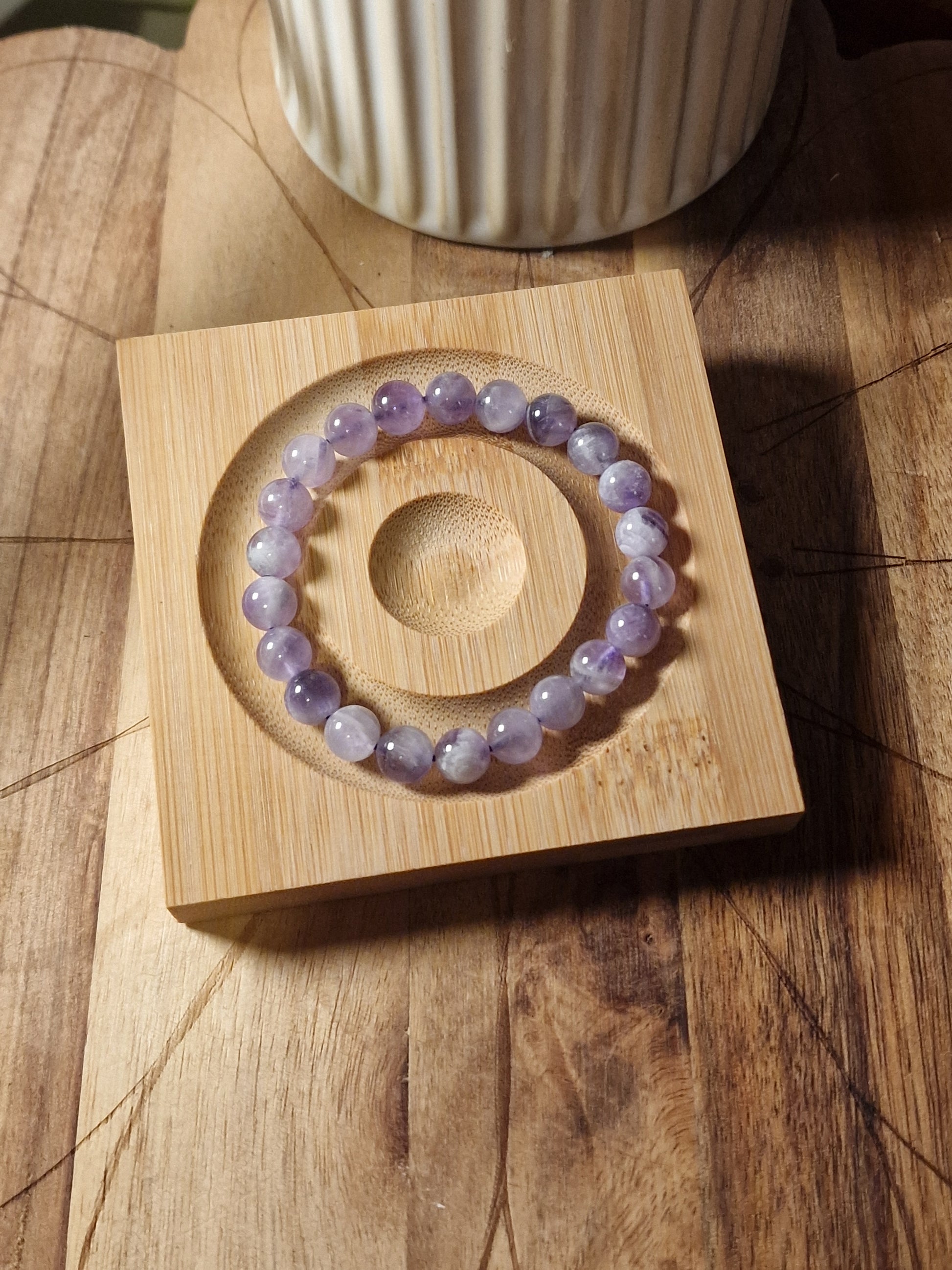 A bracelet of soft intuition and spiritual ease. These 8mm Amethyst beads shift from deep violet to gentle lavender, like dusk sky fading into night. Ideal for rituals, rest, or simply feeling held in calm clarity.