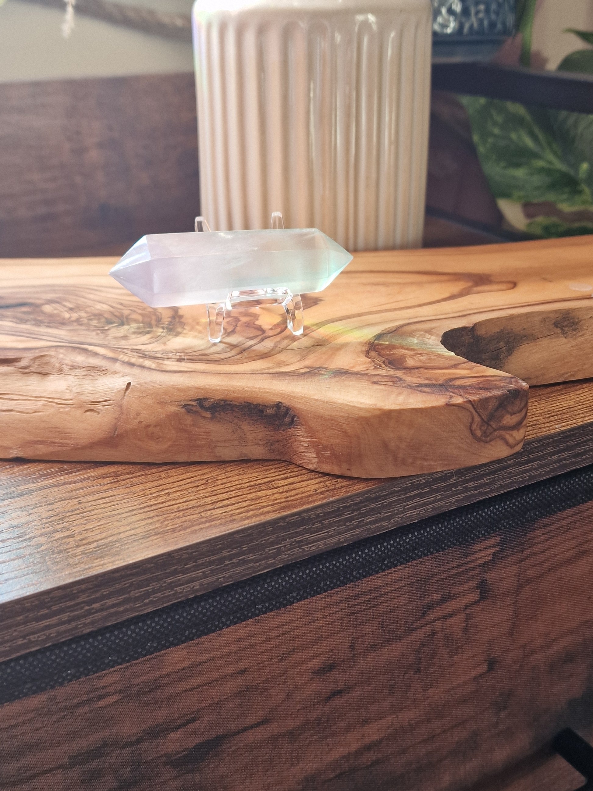 Sweetly banded in shades of lilac, mint, and honey, each Candy Fluorite point feels like holding a captured rainbow. The double-terminated shape allows energy to flow in both directions, bringing clarity, calm, and balance to your space.