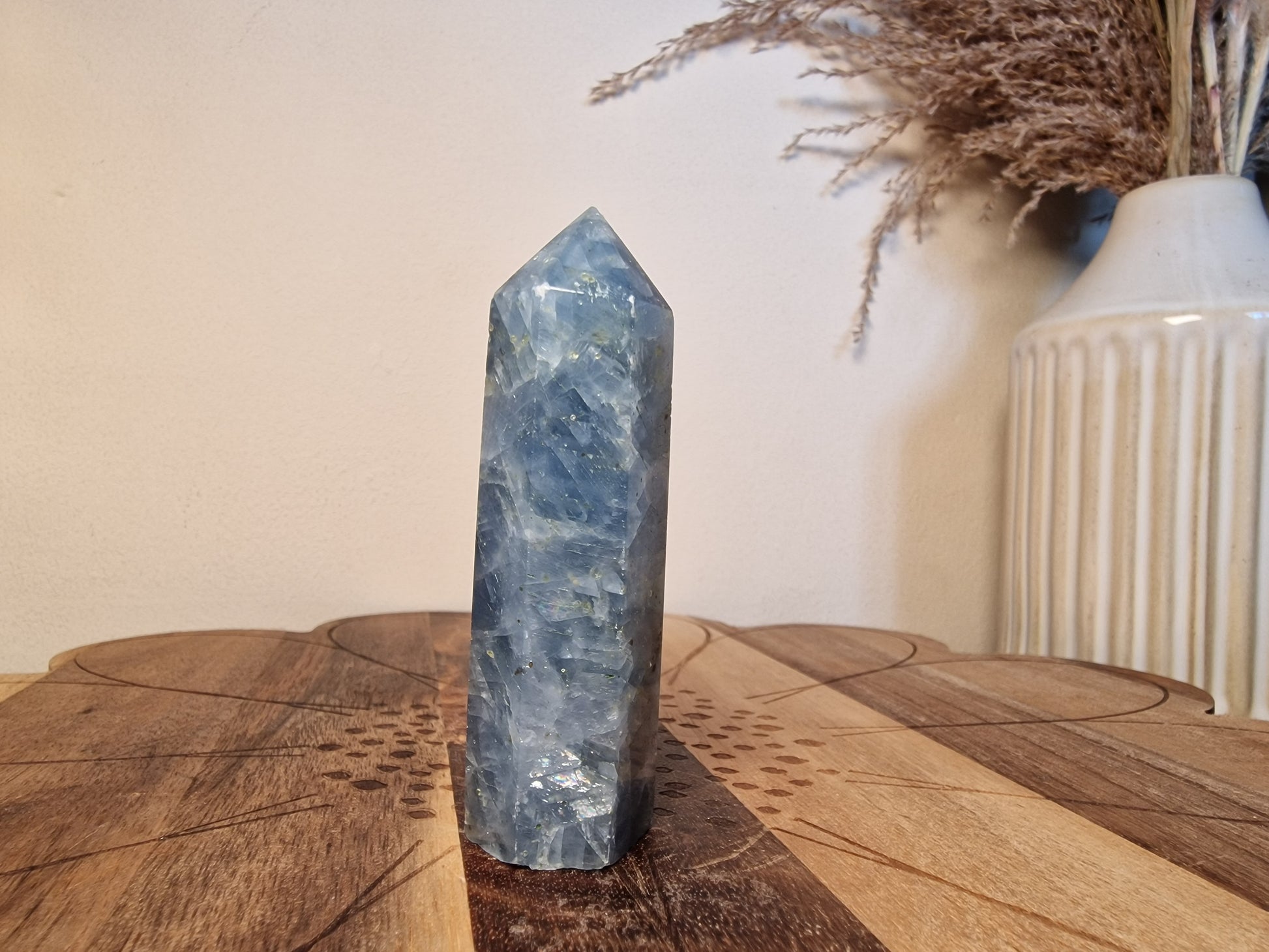 Pale blue crystals that feel like frozen sky, calm, still and quietly uplifting.