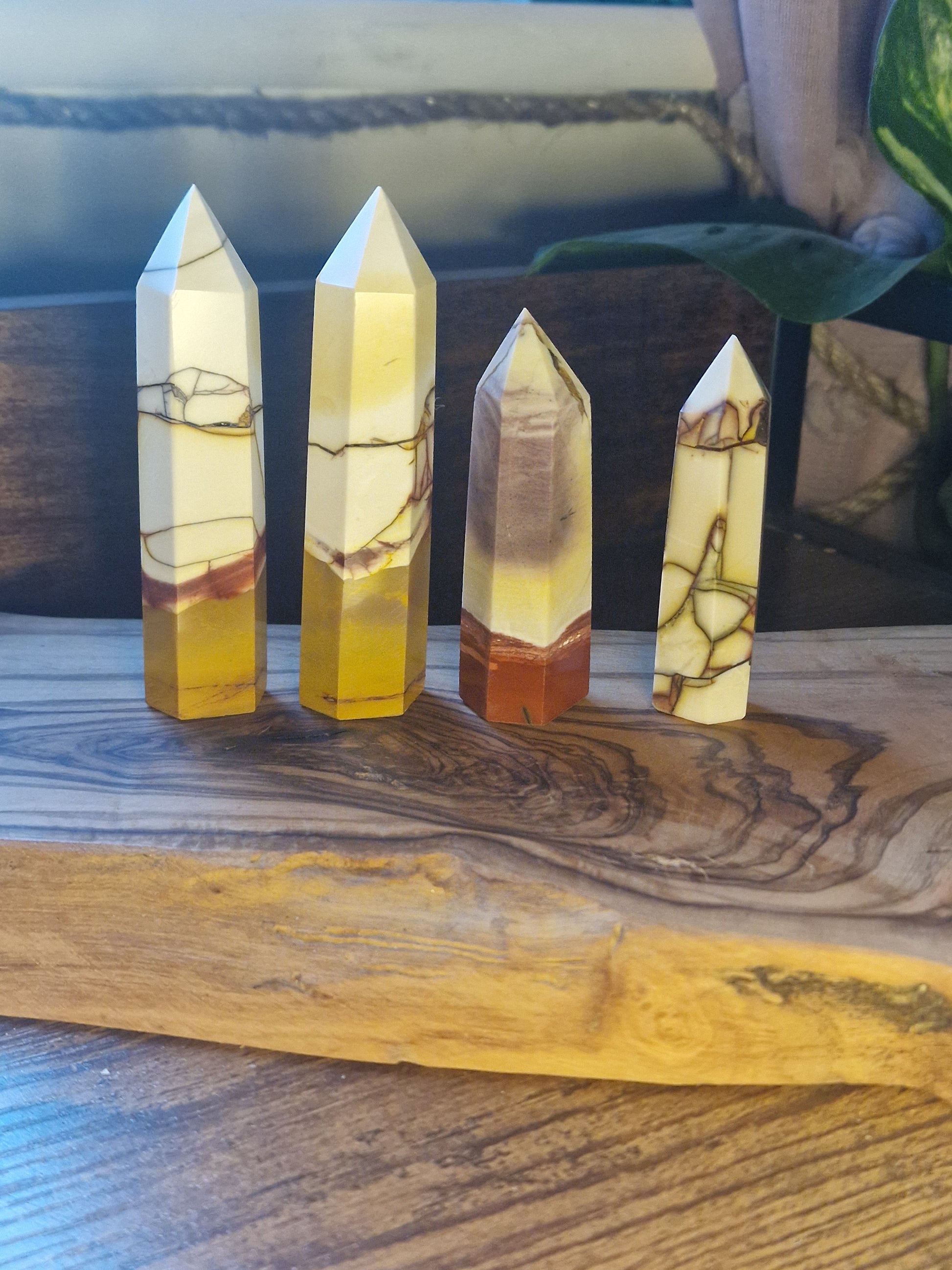 Beautiful Mookaite towers showing warm layers of cream, honey, mustard and earthy red tones flowing naturally through the stone.
