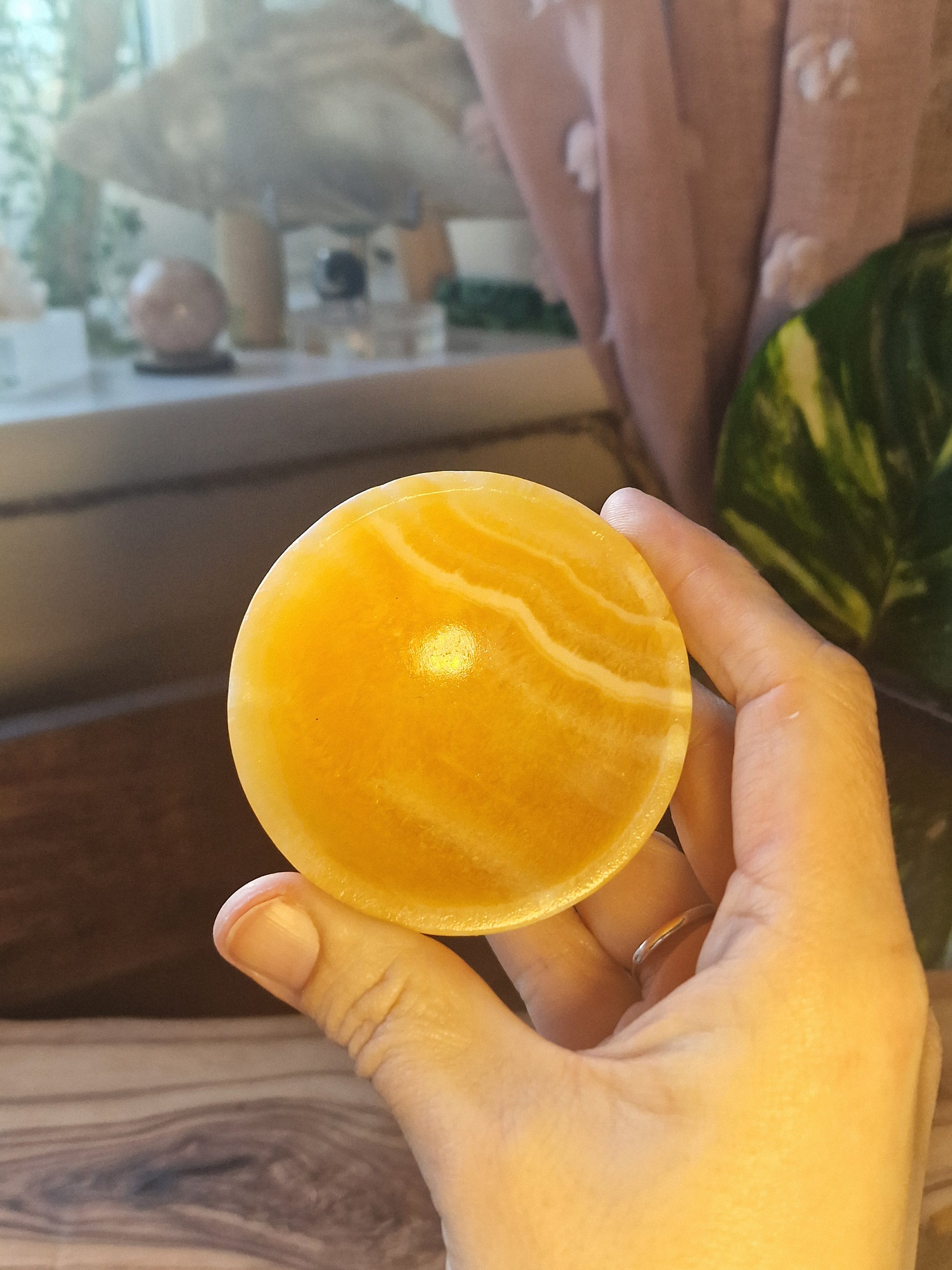 Each piece has its own natural banding and soft glow when the light passes through the stone.