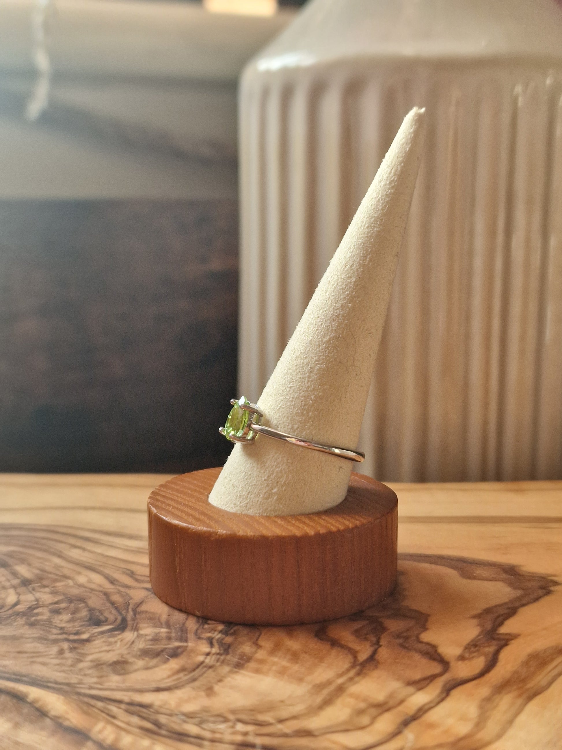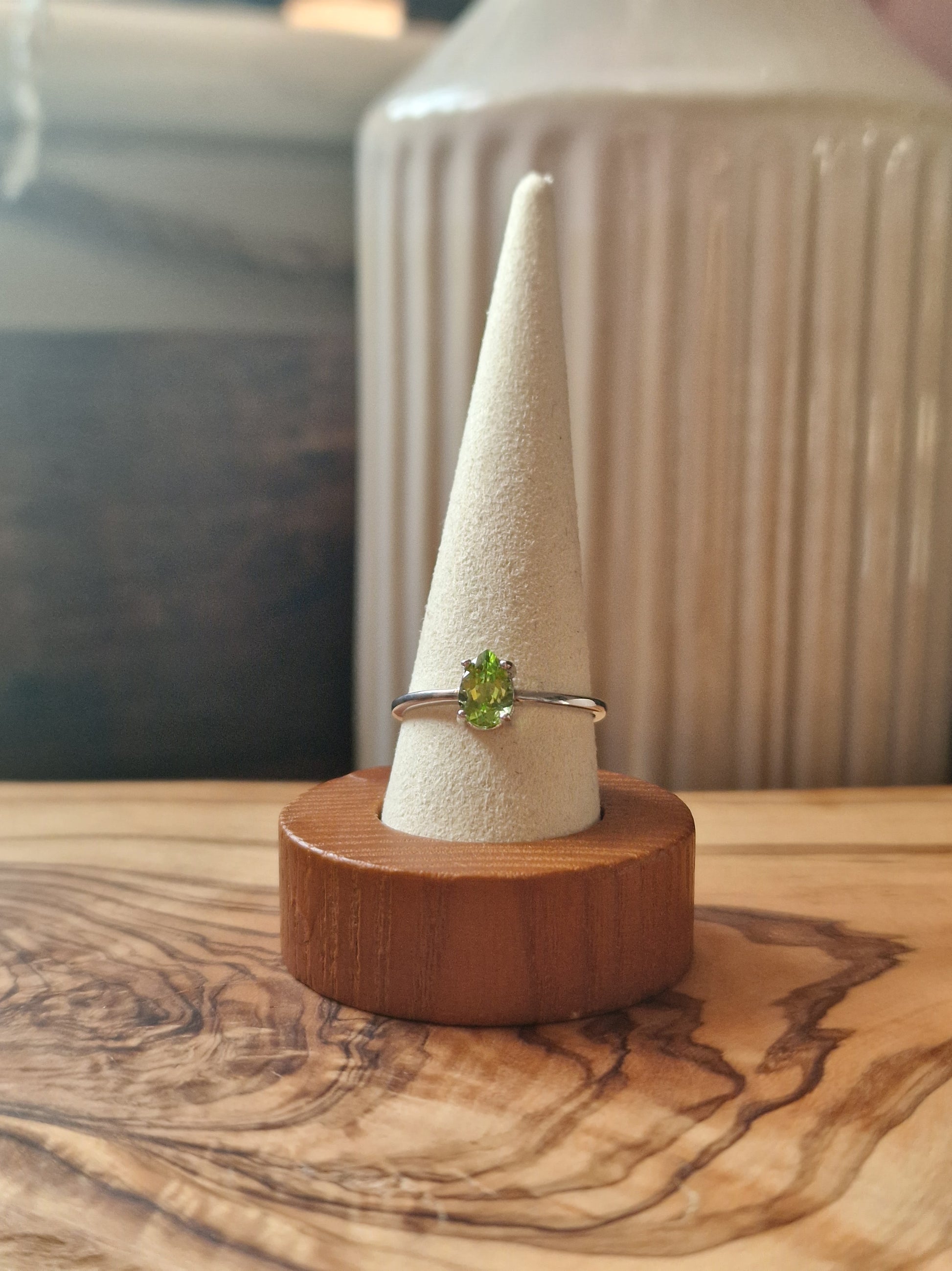 A fresh, lively peridot set in a simple 925 silver band. Adjustable for a comfortable, everyday fit.