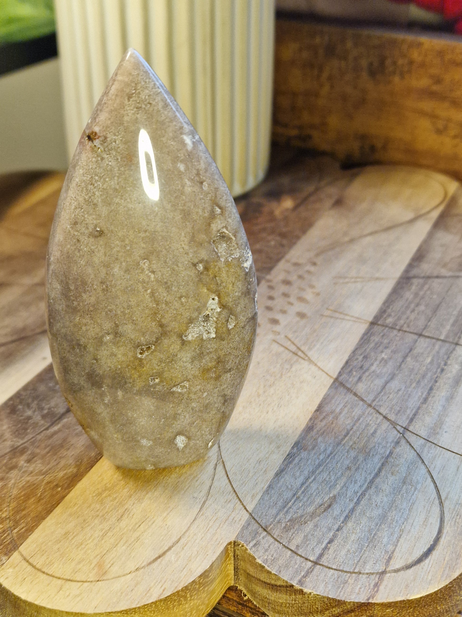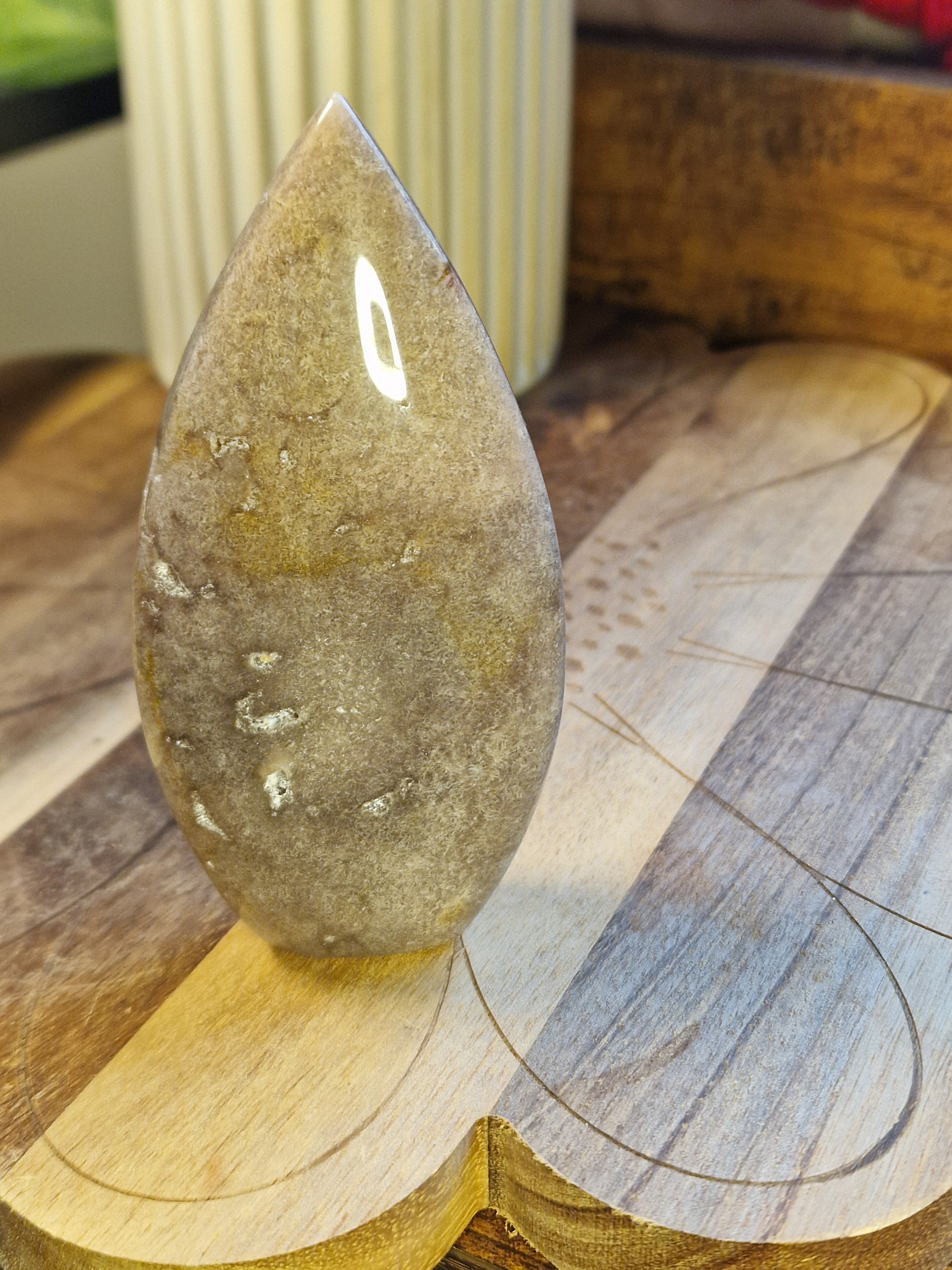 Smoothly polished and comfortable to hold, it’s a lovely piece for shelves, bedside tables, or moments of quiet grounding. Subtle rather than showy, this stone is offered for its calm feel and natural character.