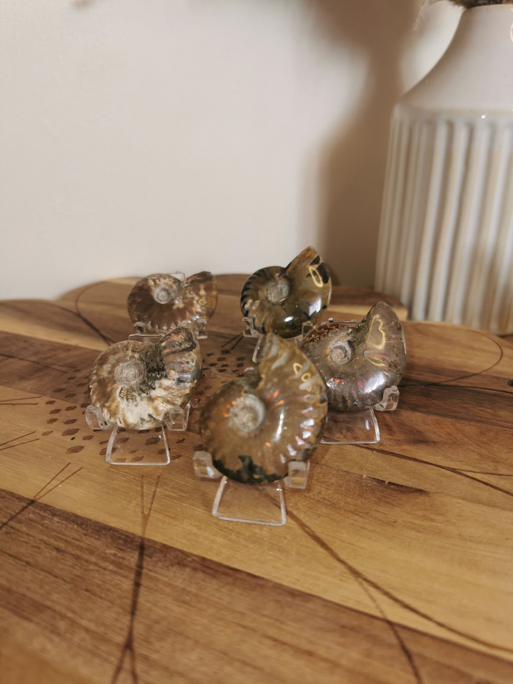 Ancient spirals of stone and time, these polished ammonite fossils are remnants of a prehistoric ocean world, each one capturing a unique echo of the past. Their hypnotic curves and earthy shimmer make them both grounding and deeply fascinating to hold or display.